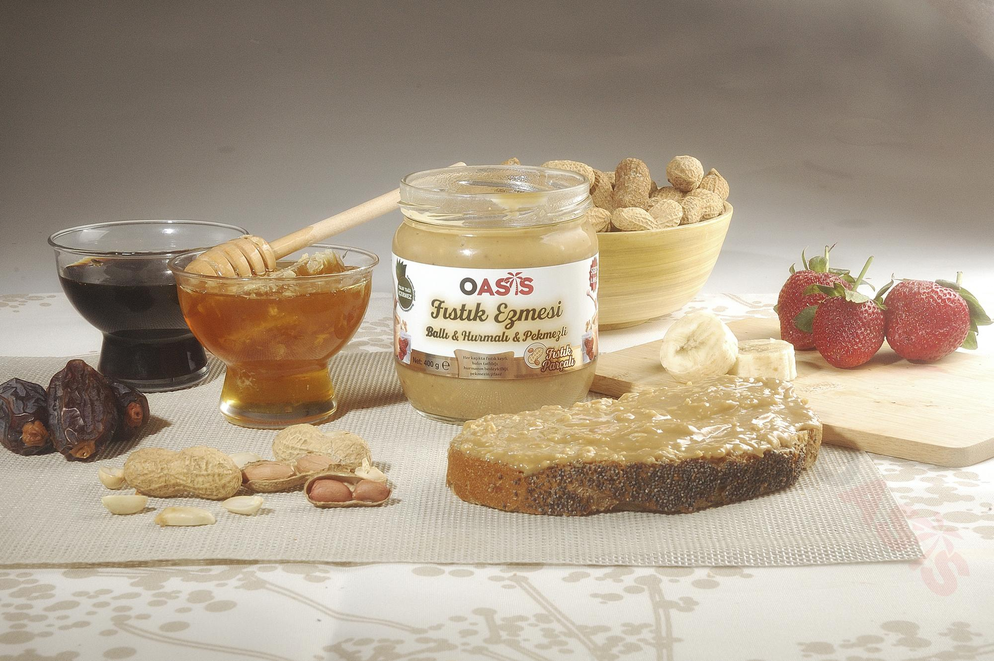 Fıstık Parçalı Ballı Hurmalı ve Pekmezli Fıstık Ezmesi