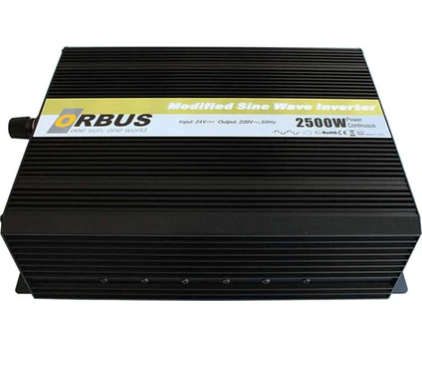 Orbus MS24-2500 24 Volt 2500 Watt Modified Sinus İnvertör Özellikleri AC 220 volt elektrik enerjisinin olmadığı yerde 12 ve 24 volt aküden, 220 Volt AC enerji inverterler ile sağlanır. Akıllı sistemler olarak tasarlanan ORBUS inverter ler, aşırı yük, çıkı